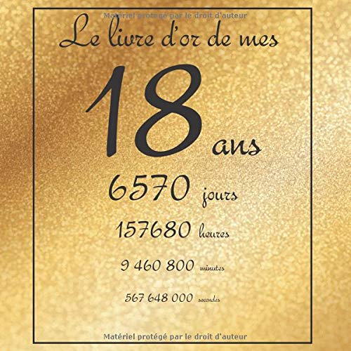 Titre de livre: Le livre d'or de mes 18 ans, 6570 jours, ...: Thème gold, livre à personnaliser pour anniversaire. Téléchargez ou lisez le livre Le livre d'or de mes 18 ans, 6570 jours, ...: Thème gold, livre à personnaliser pour anniversaire de au format PDF et EPUB. Ici, vous pouvez télécharger gratuitement tous les livres au format PDF ou Epub. Utilisez le bouton disponible sur cette page pour télécharger ou lire un livre en ligne.